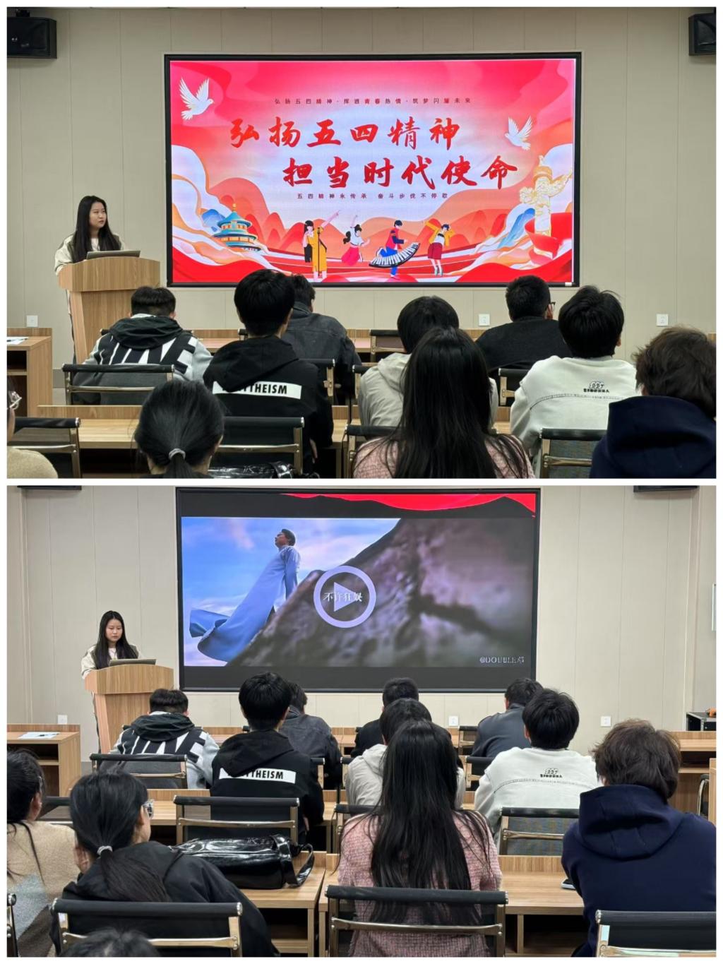 班会以观看《觉醒年代》精彩片段开场。片中青年员工为国家命运奔走、为民族觉醒呐喊的画面,生动展现了五四运动的宏大场景。使同学们直观感受到时代青年的热血,深刻认识到五四运动的重大意义。