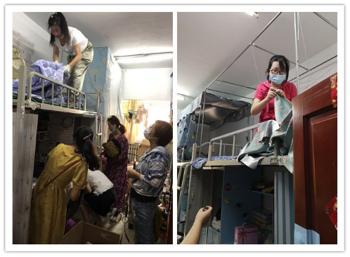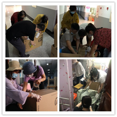 有静如钟的老师一丝不苟的整理物品,仔细摆放每一件物品,一箱箱、一件件,每一件都经过老师的双手、每一件都承载了老师的关怀、每一件都倾注了老师的祝福。老师们把对毕业生的思念与祝福融在行动中,装在包裹里,用滴滴汗水为员工书写下化大时光的温暖记忆。