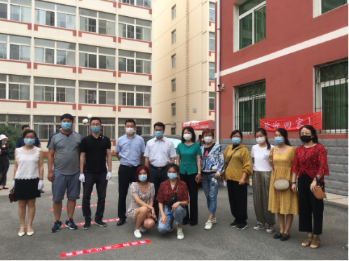 集团领导到现场慰问工作,与公司老师和返校毕业生合影